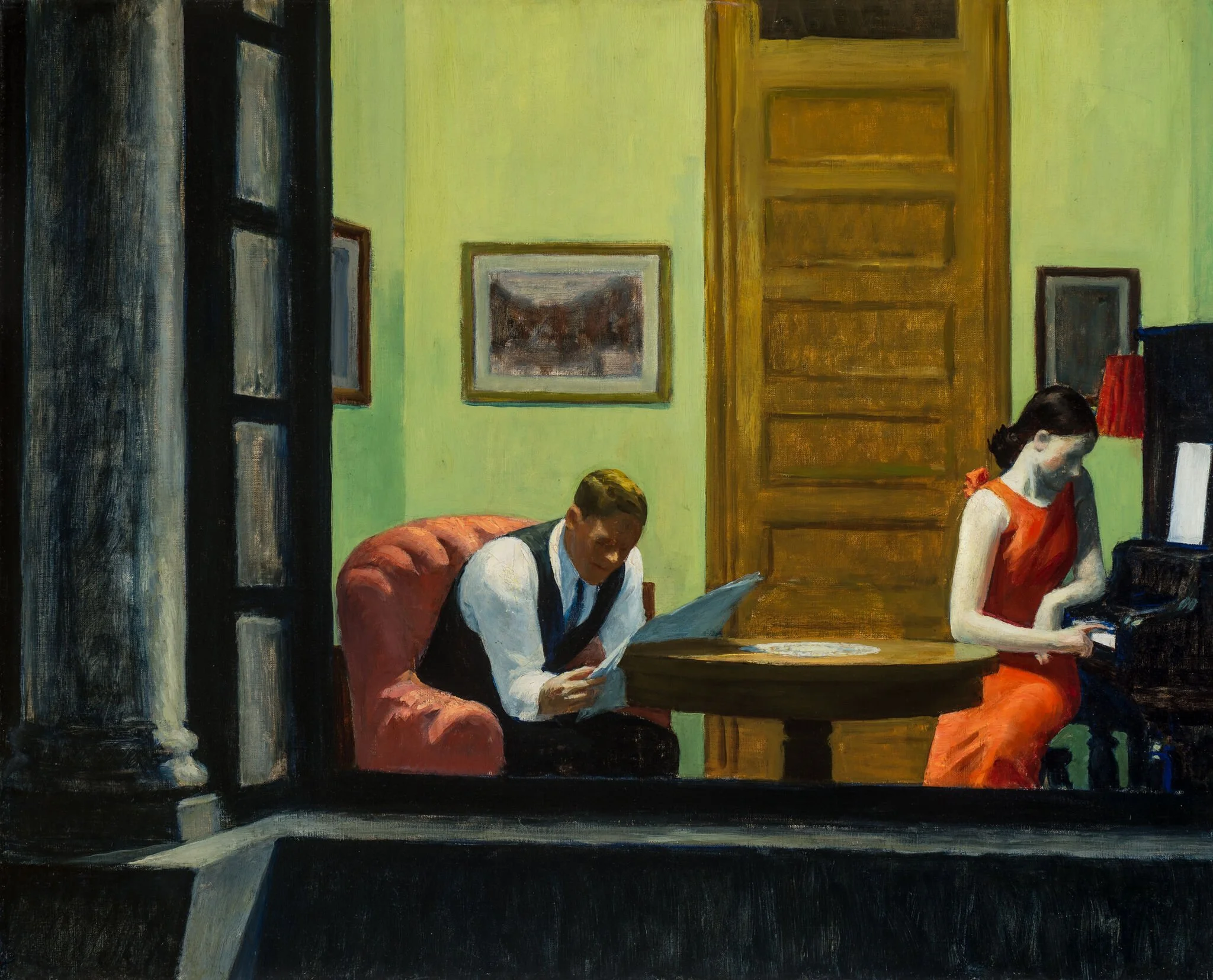 Edward Hopper, Room in New York, 1932. Oil on canvas, 29 × 36 in. (73.7 × 91.4 cm). Sheldon Museum of Art, University of Nebraska, Lincoln; Anna R. and Frank M. Hall Charitable Trust. © 2022 Heirs of Josephine N. Hopper/Licensed by Artists Rights Society (ARS), New York